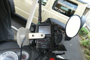 SPORTCITYのミラーは見易いんだが、横に大きく張り出してるためにすり抜けがしにくいのが弱点だった。更にハンドル周りに色々付けてしまったんで、標準のミラーではキッチリ固定出来なくなった。つー事で、ミラーを交換する事にした。Runnerの時と同様バレンタイプと言うのにして見る事した。このタイプだと固定がボルトになるので、ミラー周りに色々つけても固定出来るのと、進行方向に向かって内側にミラーを動かす事が出来るのが良い感じ。早速交換してみた所、鏡面は若干小さくなるが、極端に見にくくなる事も無く、かつ幅も狭まったので当初の目的は果たした感じ。今後に期待。| 20 Mar 2012 無線機装着 (STANDARD VX-3) |