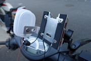 今やガーミンよりも愛用しているNV-U35だが、車体への取り付けはRAMマウントに汎用のPDAホルダーを使っていた。が、NV-U35は一応防水ではあるのだが、充電の為にDCプラグを挿すと横の蓋を開けねばならず、この状態では防水にならないのが弱点だった。この問題を解決するには、防水状態のまま充電が可能な純正のクレードルを使うと言う案がある。但し、そのままでは使えないので、RAMマウント化と言うちょっとした加工が必要になる。| 2 Oct 2011 USB端子装着 |